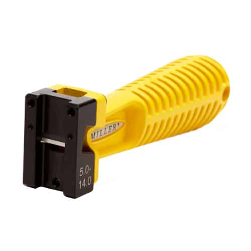 Die kompakte Miller® MB08-Serie ist für Längsschnitte an Steigleitungs-Breakout- und Mikrorohrkabelmänteln mit einem Durchmesser von 0,19″ bis 0,55″ (5 bis 14 mm) konzipiert. Das ergonomische Werkzeug wurde für einen sicheren und einfachen Zugang zu den inneren Fasern entwickelt und verfügt über einen einzigartigen vertikalen Griff, der es Ingenieuren ermöglicht, auch bei begrenztem Platz effizient zu arbeiten. Das sichere, ergonomische Design liegt gut in der Hand und ermöglicht eine einfache Bedienung ohne Verletzungsgefahr. Geeignet für Kabeldurchmesser von 0,19″ bis 0,55″ (5 bis 14 mm). Robuster, schlagfester Griff und Aluminiumgehäuse. Einzigartiger vertikaler Griff für einfachen Zugang in engen Räumen. Keine Anpassungen an der werkseitig eingestellten Klinge aus Kohlenstoffstahl erforderlich. Kompakt und leicht mit nur 0,1 kg
